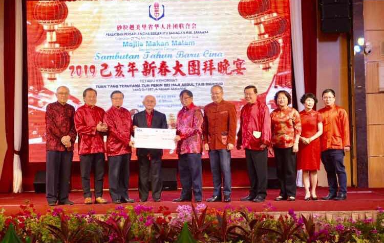 美里省华人社团联合会今晚在帝宫大酒店宴会厅举办“2019己亥年新春大团拜”,除了邀请砂州元首敦泰益玛目及砂首席部长拿督巴丁宜阿邦佐哈里参与盛会,也不忘邀请会务顾问拿督许庆璋共襄盛举。众人欢聚一堂,一同庆祝农历新年的到来。